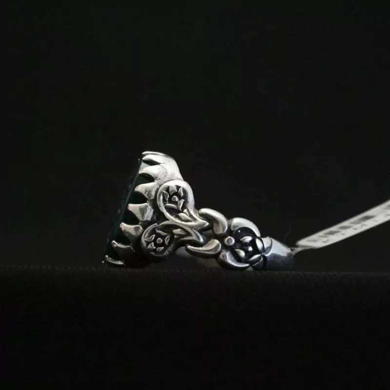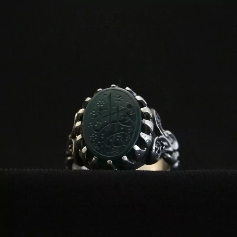 انگشتر عقیق سبز نقش زیبای یازهرا اصل ( انگشتر مردانه )