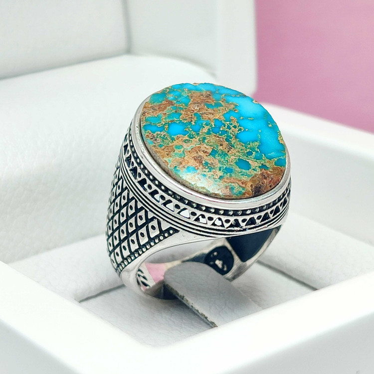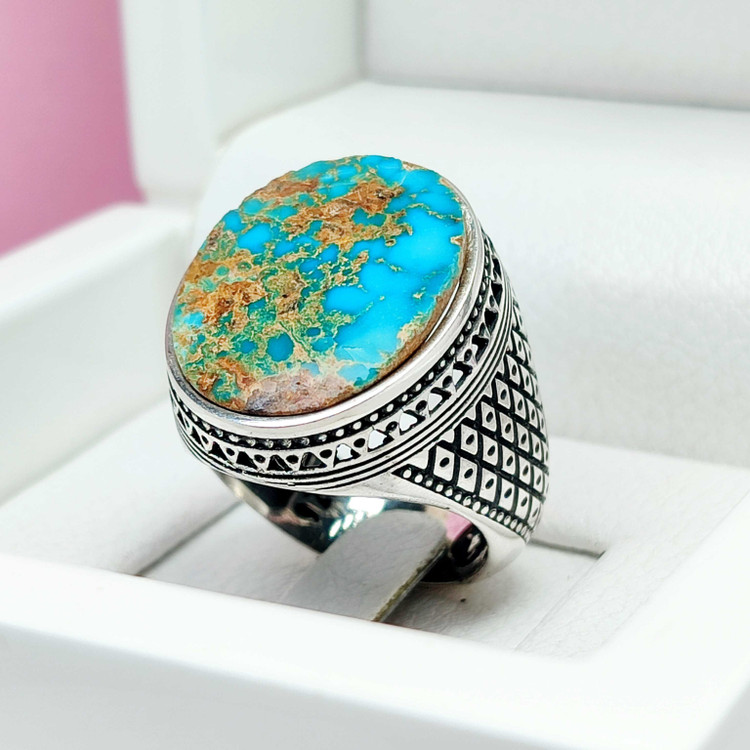 ✨انگشتر مردانه فیروزه اصل نیشابور 🔸رکاب نقره مردانه 🔸عیار نقره : 925 🔸وزن: 14 گرم 🔸نگین: 22 میلیمتر 🔸نوع رکاب: ماشینی 🔸نوع نگین: فیروزه 🔸سایز: 64 (قابل سایز) ✍حکاکی ذکر دلخواه شما روی سنگ عقیق به رنگ های مختلف و رکاب موردنظر شما😍 سایز:اگر تمایل دارید انگشتر با سایز دلخواه شما ارسال شود ، فقط کافیست سایز انگشت خود را در هنگام ثبت سفارش (در صفحه سبد خرید » قسمت توضیحات مشتری) ثبت کنید. اگر سایز انگشت خود را نمیدانید ، میتوانید به صفحه ی نحوه سایزگیری در سایت مراجعه و خیلی راحت سایز دقیق انگشتر خود را بدست بیاورید.برای دیدن این صفحه اینجا کلیک کنید.