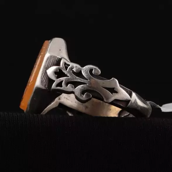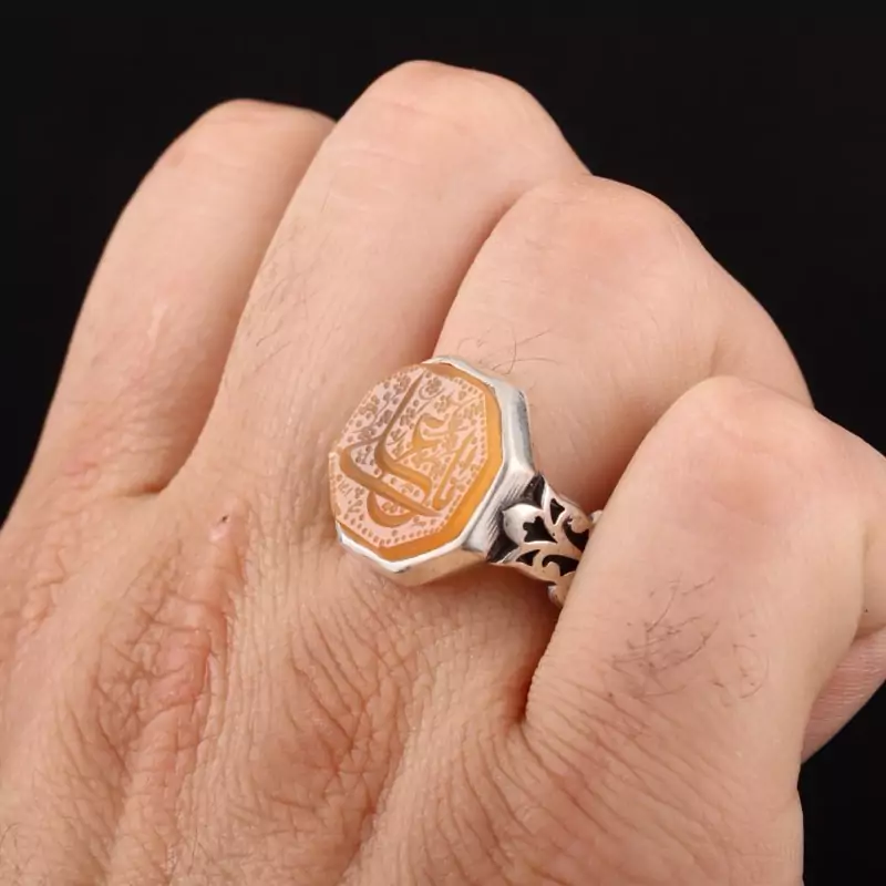انگشتر نقره مردانه عقیق یمنی هشت ضلعی نقش یاعلی اصل ( انگشتر مردانه )