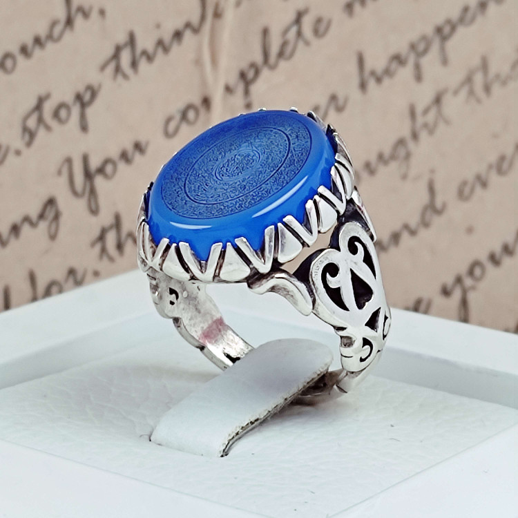 انگشتر 16 ذکر اصلی عقیق آبی مردانه