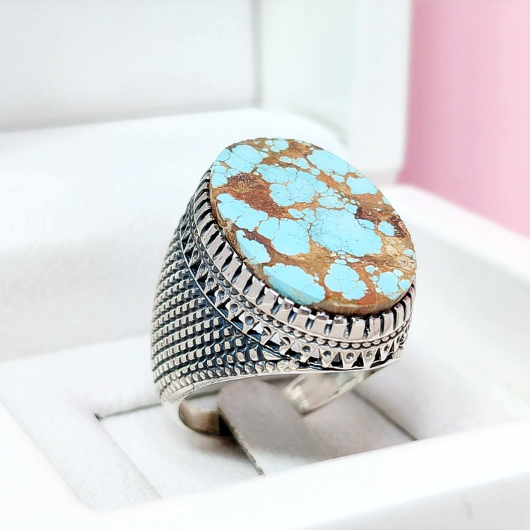 انگشتر مردانه فیروزه نیشابوری اصلی \- ساخت مجدد با فیروزه اصلی نیشابوری مشابه 🔸رکاب نقره مردانه 🔸عیار نقره : 925 🔸وزن: 15 گرم 🔸نگین: 25 میلیمتر 🔸نوع رکاب: ماشینی 🔸نوع نگین: فیروزه نیشابوری 🔸سایز: 65 (قابل سایز) ✍حکاکی ذکر دلخواه شما روی سنگ عقیق به رنگ های مختلف و رکاب موردنظر شما😍 📬با ارسال رایگان سایز:اگر تمایل دارید انگشتر با سایز دلخواه شما ارسال شود ، فقط کافیست سایز انگشت خود را در هنگام ثبت سفارش (در صفحه سبد خرید » قسمت توضیحات مشتری) ثبت کنید. اگر سایز انگشت خود را نمیدانید ، میتوانید به صفحه ی نحوه سایزگیری در سایت مراجعه و خیلی راحت سایز دقیق انگشتر خود را بدست بیاورید.برای دیدن این صفحه اینجا کلیک کنید.