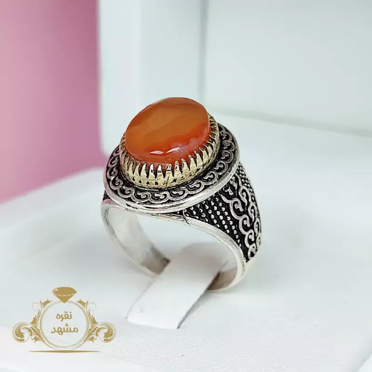 انگشتر مردانه عقیق یمنی پرتقالی (کد 1454)