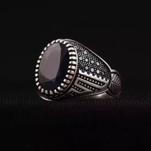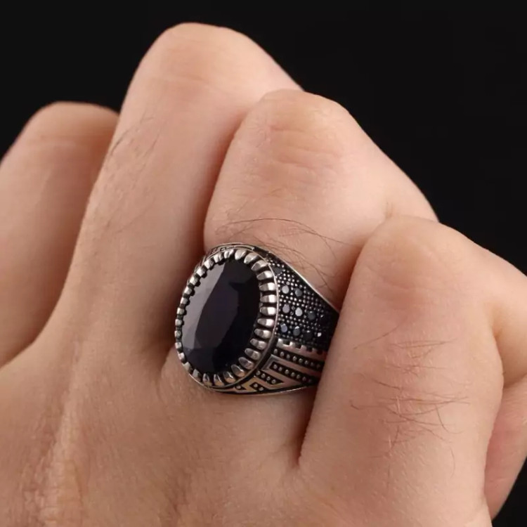 انگشتر نقره مردانه یاقوت کبود آفریقایی رکاب طرح ترک اصل ( انگشتر مردانه )
