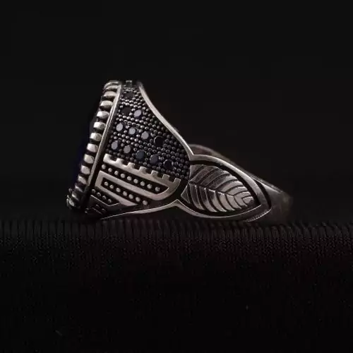 انگشتر نقره مردانه یاقوت کبود آفریقایی رکاب طرح ترک اصل ( انگشتر مردانه )