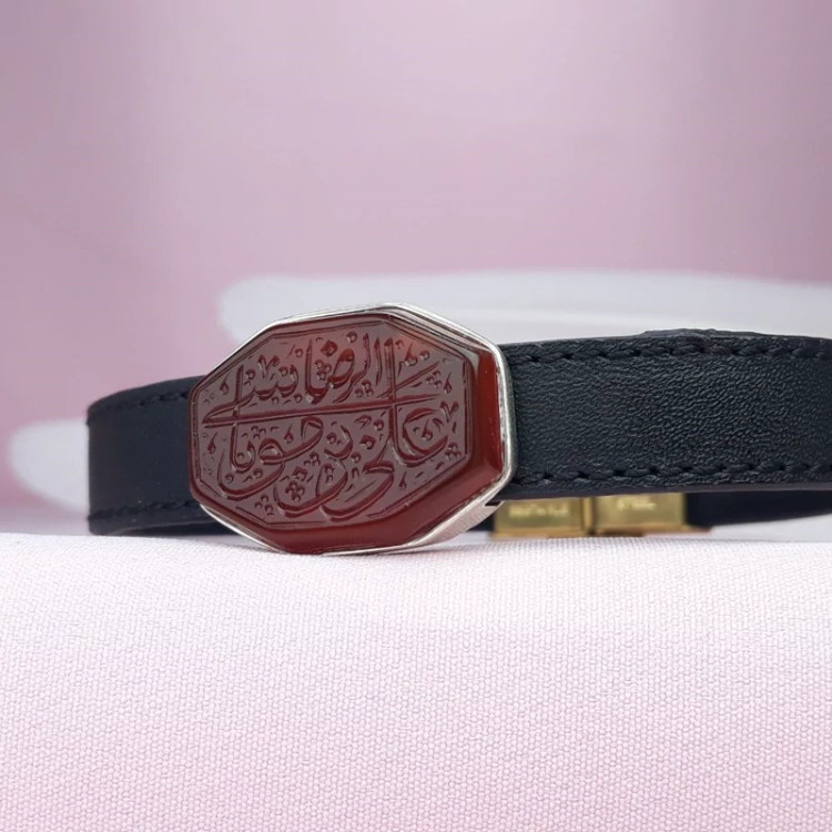 دستبند خطی مردانه عقیق سرخ علی بن موسی الرضا (کد 1230)