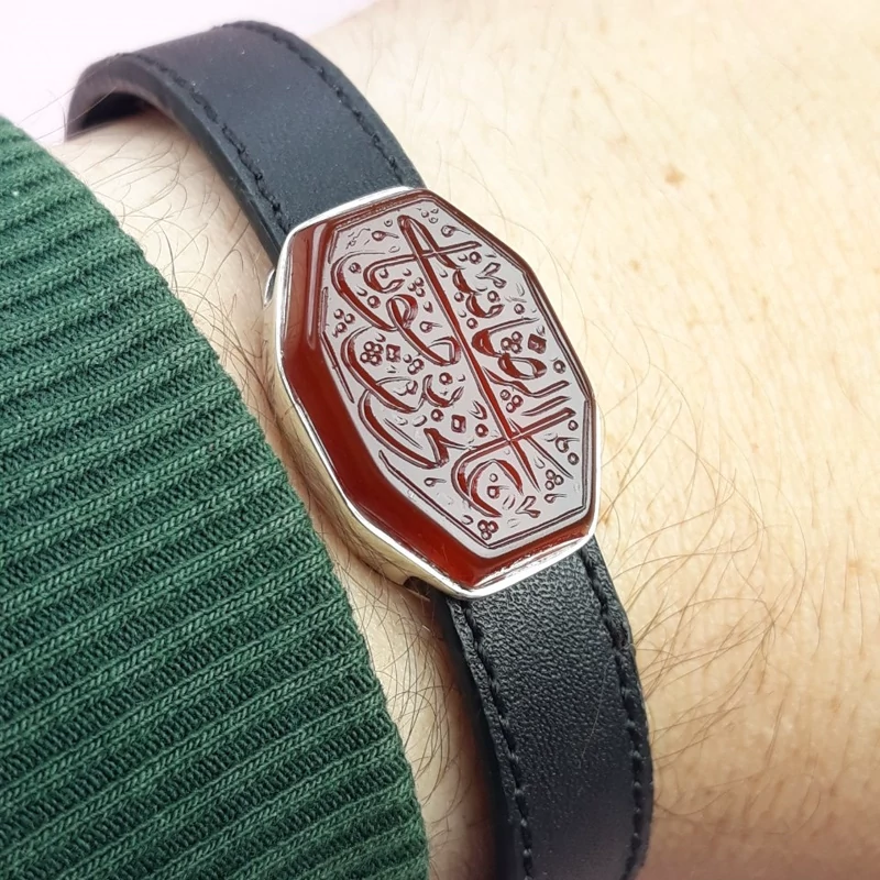 دستبند خطی مردانه عقیق سرخ علی بن موسی الرضا (کد 1230)