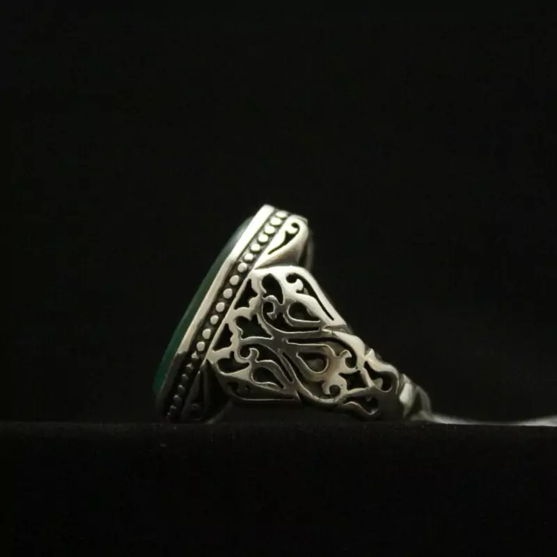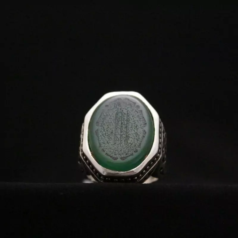 انگشتر عقیق سبز معدنی نقش آیت الکرسی اصل ( انگشتر مردانه )