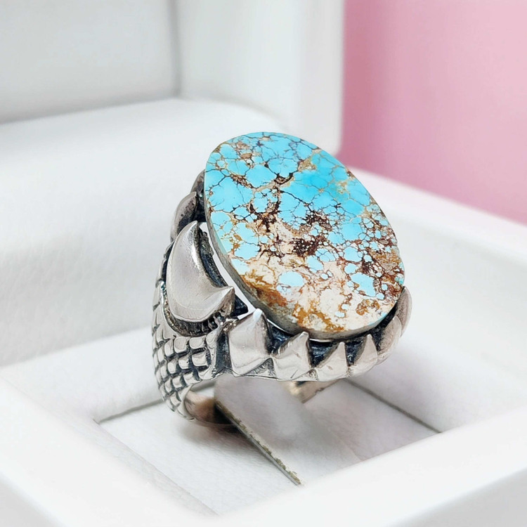 انگشتر مردانه فیروزه آبی نیشابوری اصلی و معدنی