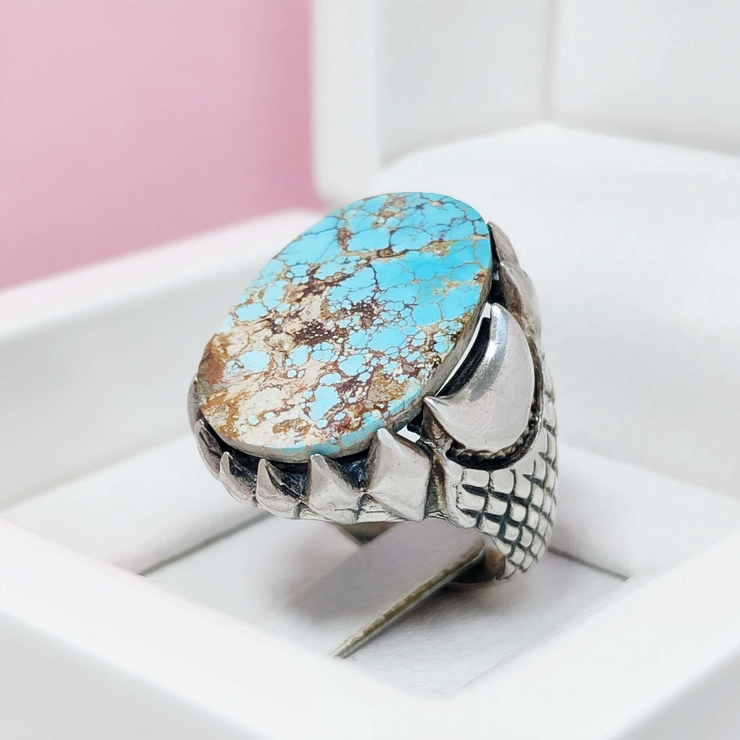 انگشتر مردانه فیروزه آبی نیشابوری اصلی و معدنی