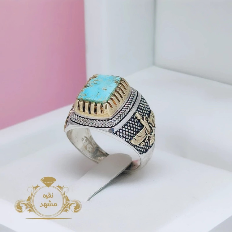 انگشتر فروهر فیروزه نیشابوری چهار گوش (کد 1467)