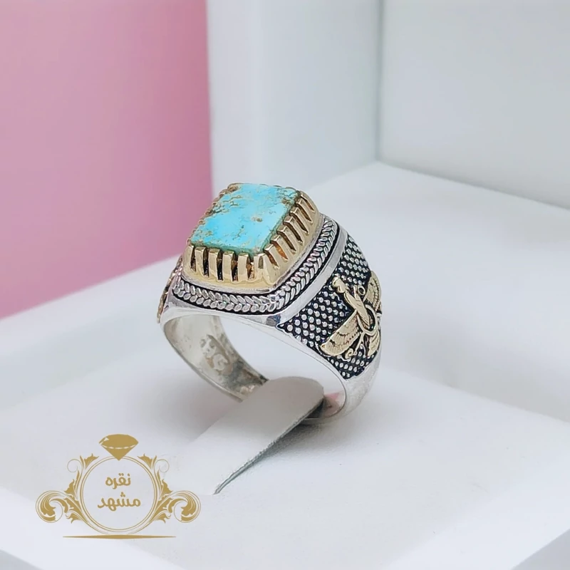 انگشتر فروهر فیروزه نیشابوری چهار گوش (کد 1467)