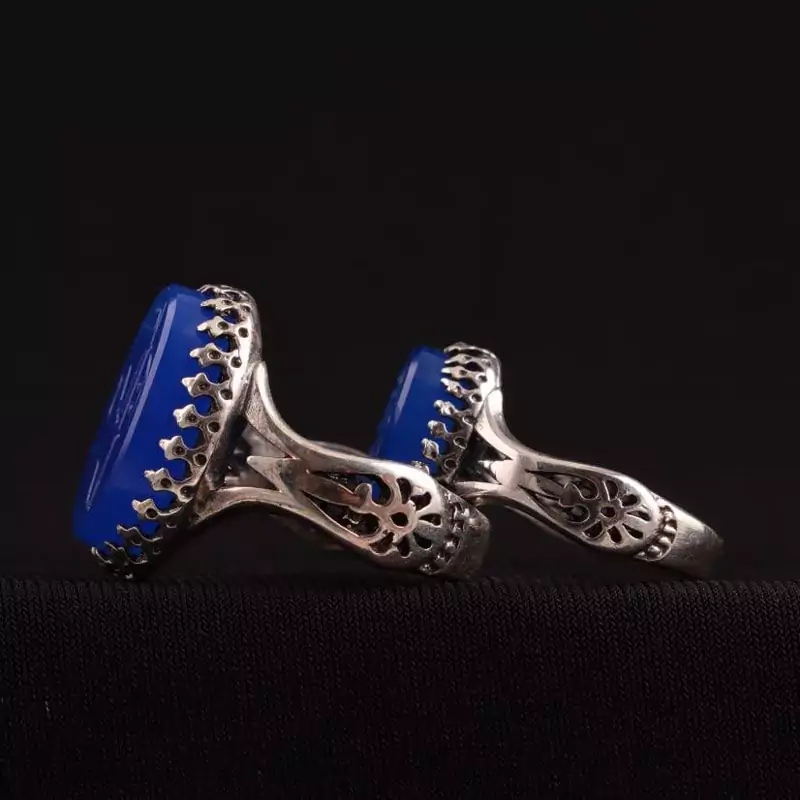 انکشتر ست نقره زنانه و مردانه با نگین عقیق اصل خطی خراسانی است.