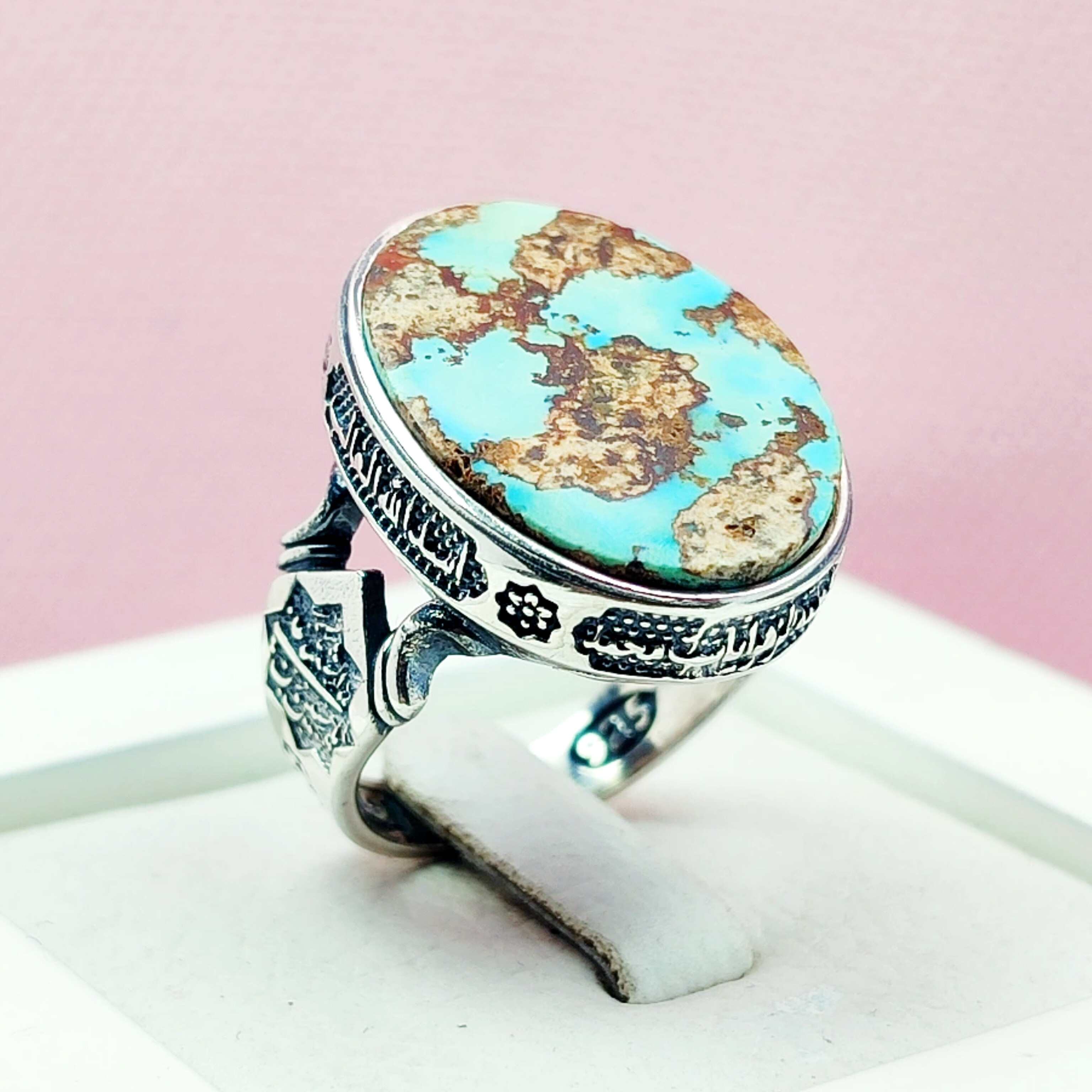 🌟انگشتر مردانه فیروزه نیشابوری 🔴 عیار نقره : 925 🟠 وزن: 13 گرم 🟡 تمام نقره رنگ ثابت 🟢 نوع رکاب: ماشینی 🔵 نوع نگین: عقیق 🟣 سایز: (قابل سایز) ✍حکاکی ذکر دلخواه شما روی سنگ عقیق به رنگ های مختلف و رکاب مورد نظر شما😍 📬با ارسال رایگان سایز:اگر تمایل دارید انگشتر با سایز دلخواه شما ارسال شود ، فقط کافیست سایز انگشت خود را در هنگام ثبت سفارش (در صفحه سبد خرید » قسمت توضیحات مشتری) ثبت کنید. اگر سایز انگشت خود را نمیدانید ، میتوانید به صفحه ی نحوه سایزگیری در سایت مراجعه و خیلی راحت سایز دقیق انگشتر خود را بدست بیاورید.برای دیدن این صفحه اینجا کلیک کنید.
