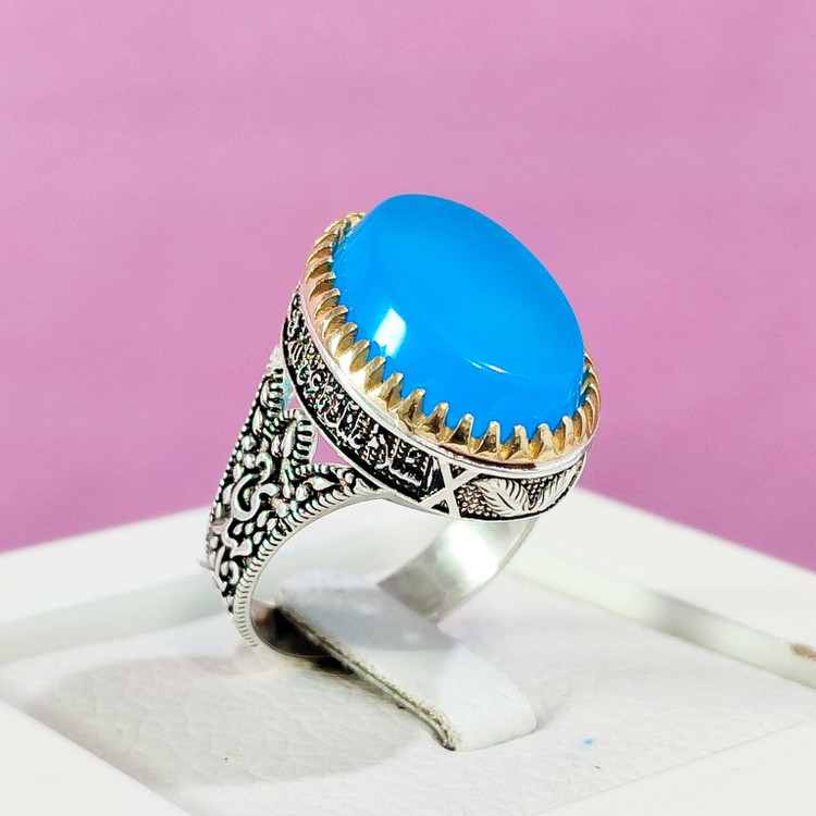 انگشتر عقیق آبی روشن