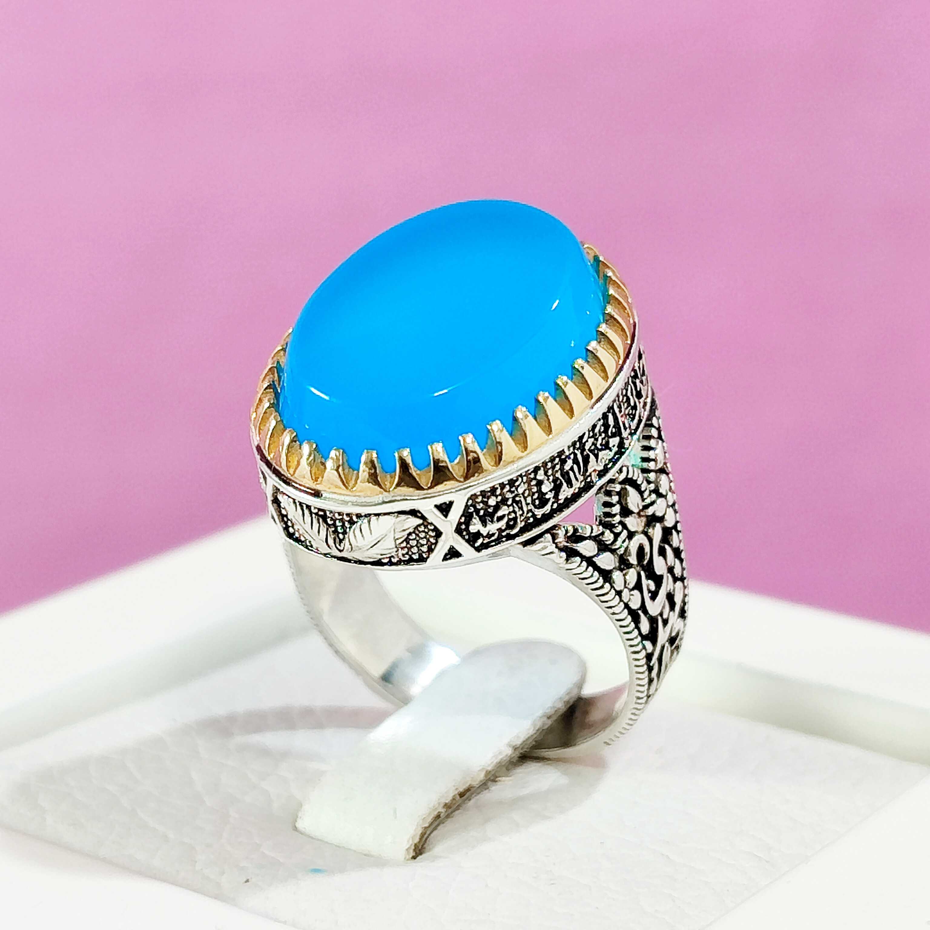 انگشتر عقیق آبی روشن