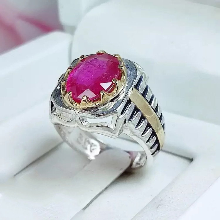 انگشتر مردانه یاقوت سرخ اصلی آفریقا نقره مشهد
