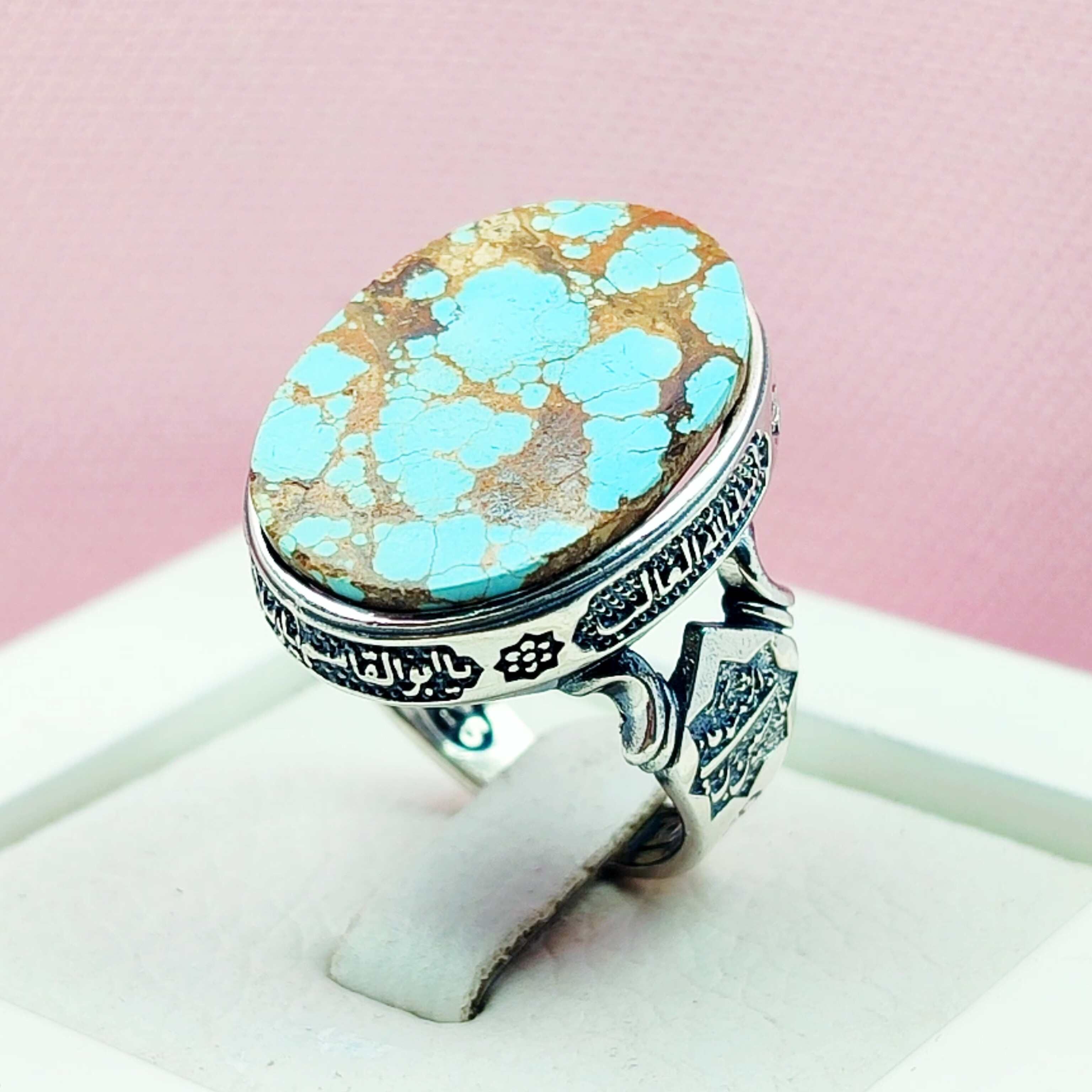 انگشتر نقره مردانه فیروزه نیشابوری رکاب مذهبی