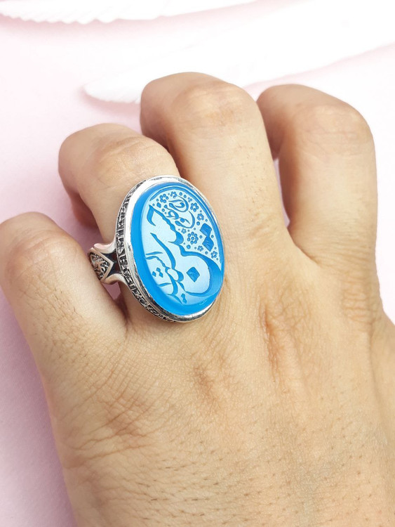 انگشتر سید الشهدا حسین (ع) انگشتر مردانه عقیق آبی