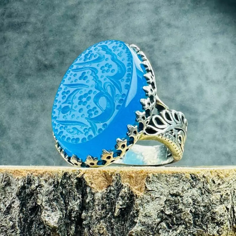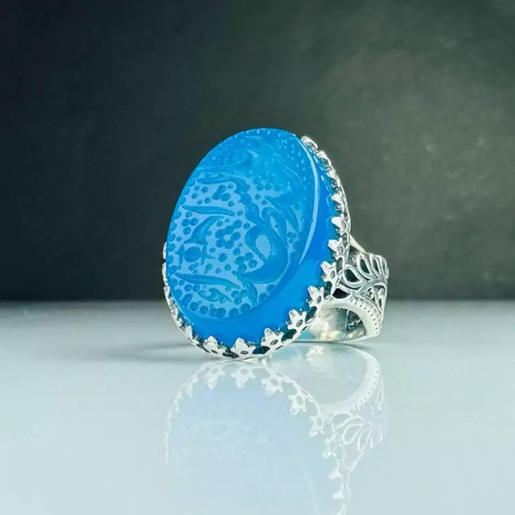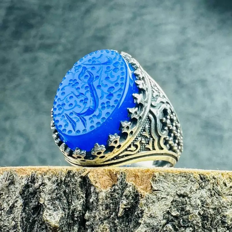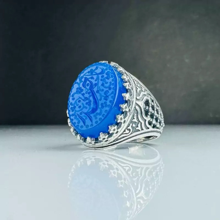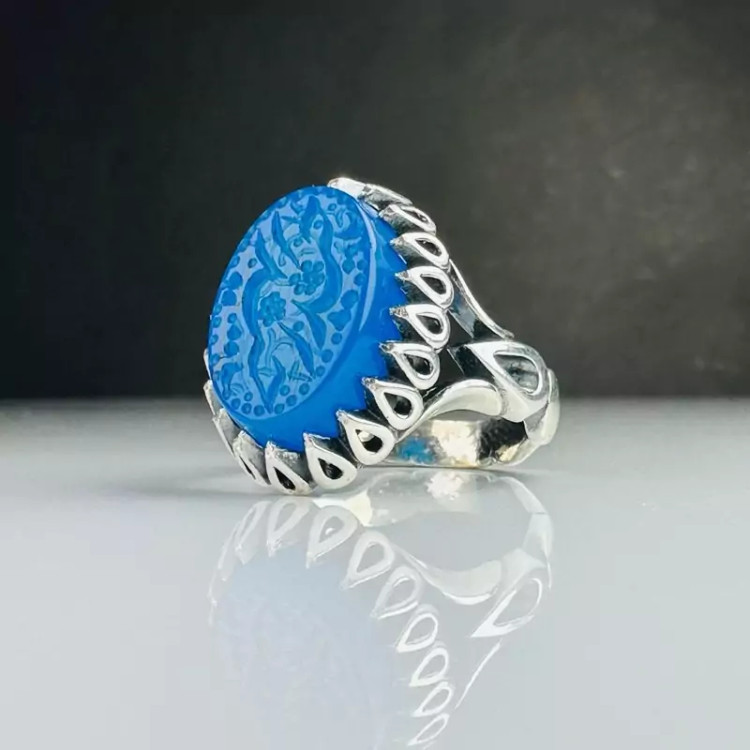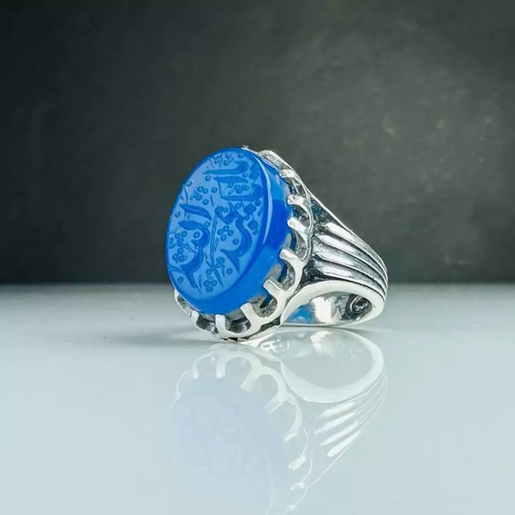 انگشتر نقره مردانه عقیق آبی اصل هدیه روز پدر