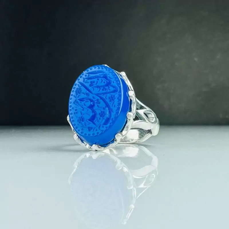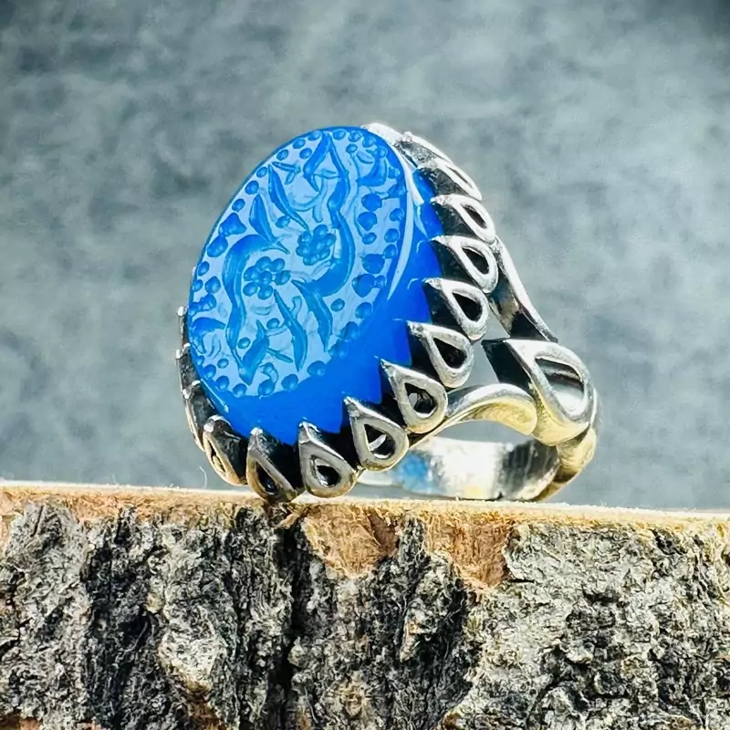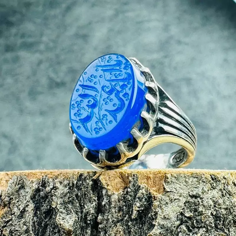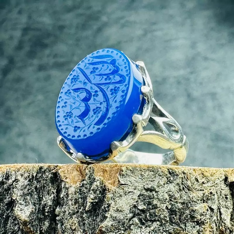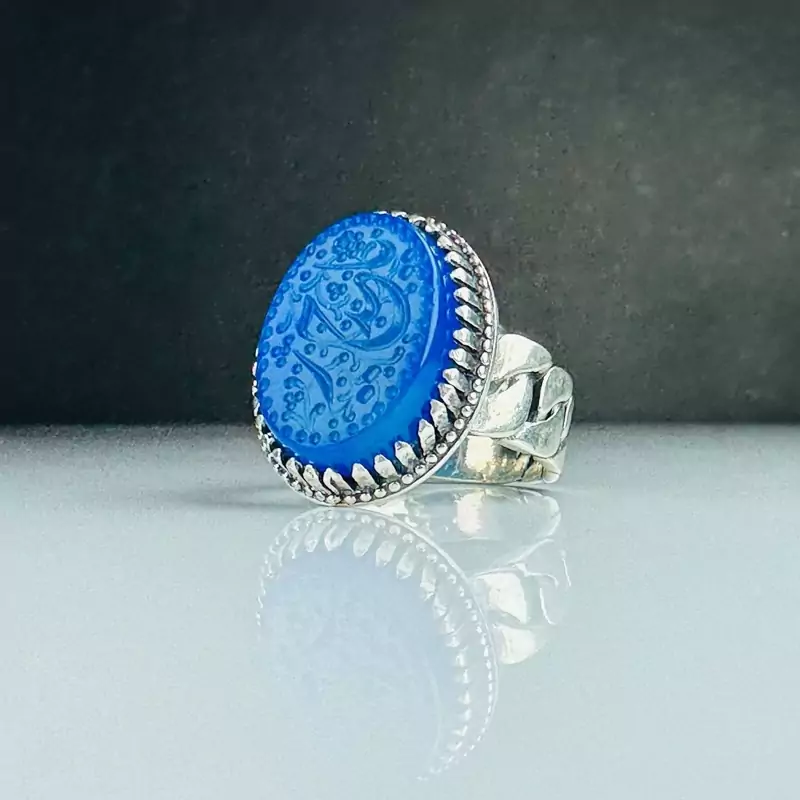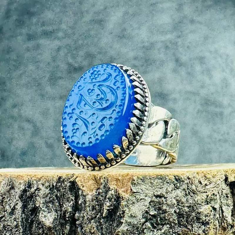 انگشتر نقره مردانه عقیق آبی اصل هدیه روز پدر