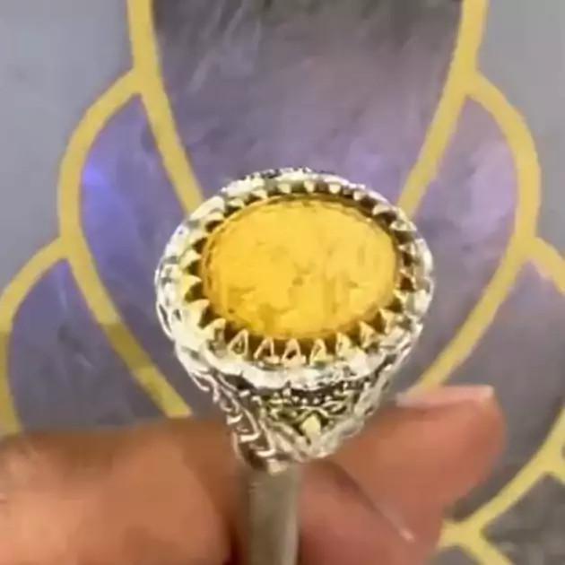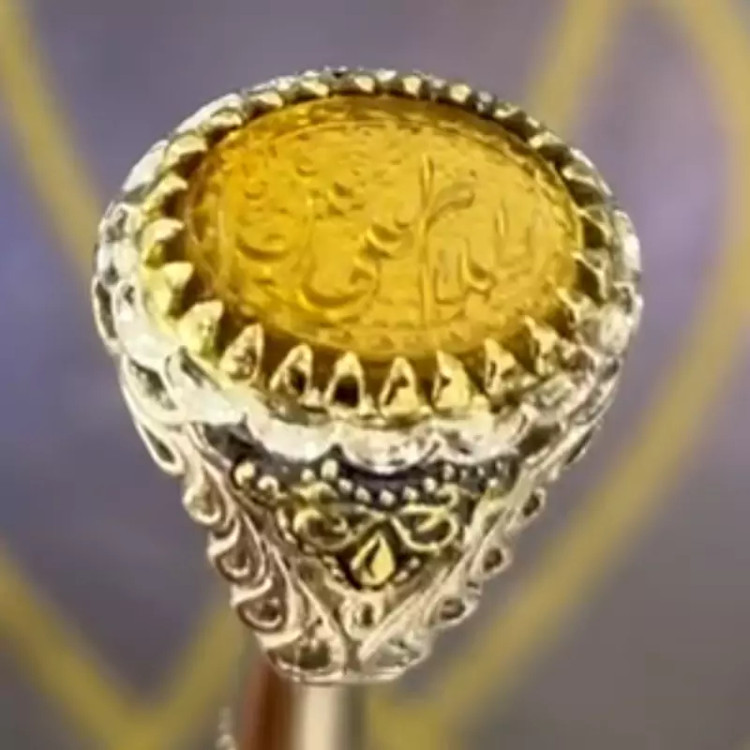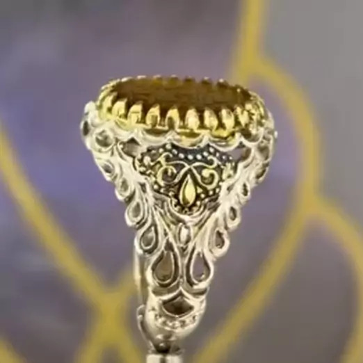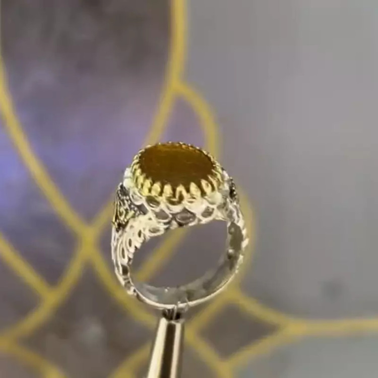 رکاب انگشتر نقره 925 عیار می باشد و نگین انگشتر سندلوس طلایی است.