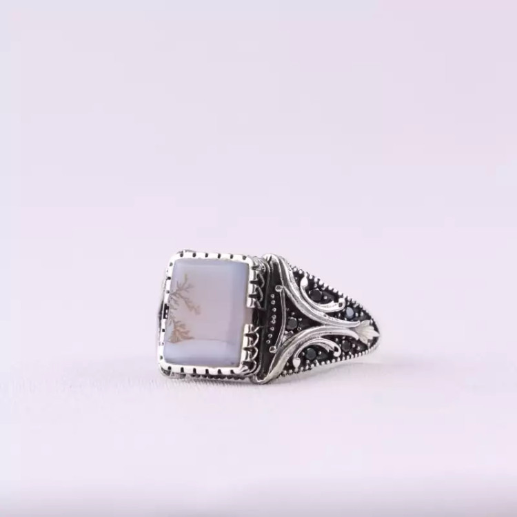 انگشتر مردانه عقیق شجر طبیعی اصل قائنات