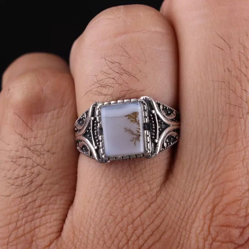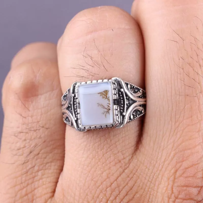 انگشتر مردانه عقیق شجر طبیعی اصل قائنات