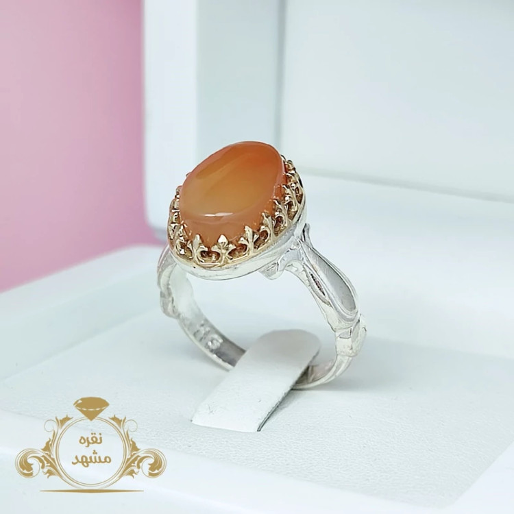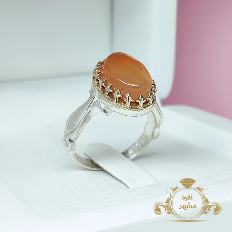 انگشتر مردانه عقیق یمنی پرتقالی نقره (کد 1429)