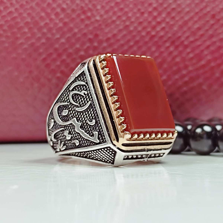 انگشتر مردانه عقیق سرخ رکاب نقره 925