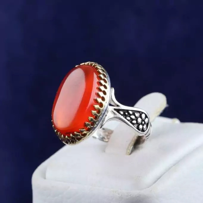 انگشتر نقره مردانه عقیق سرخ رکاب تاج برنجی نگین دامله اصل ( انگشتر مردانه )