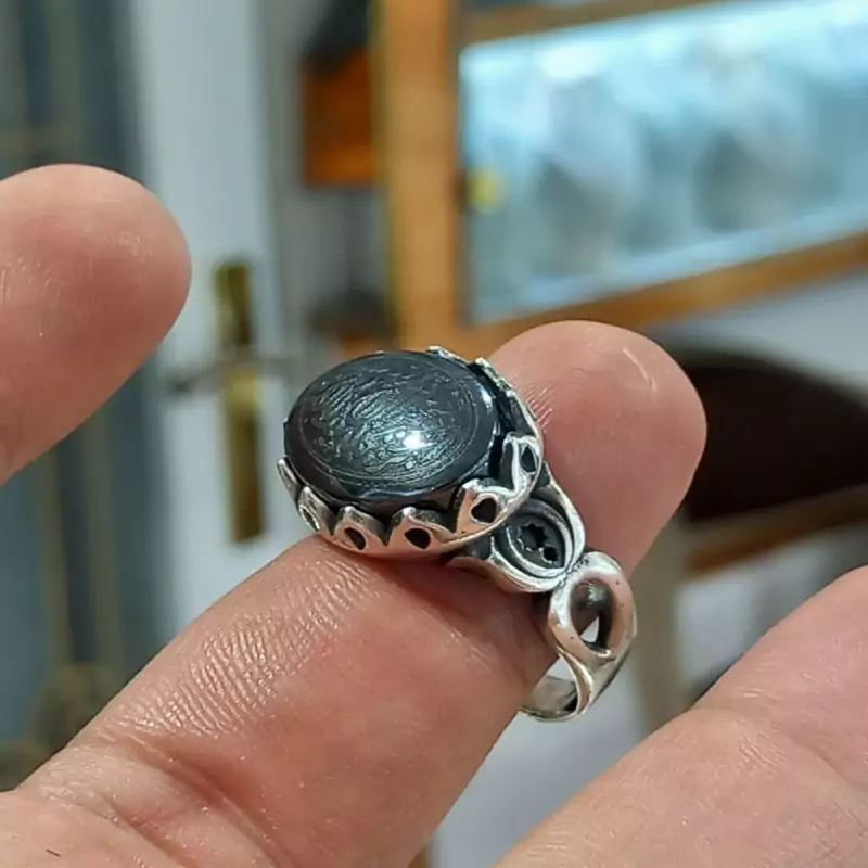 انگشتر حدید نقش زیبای هفت جلاله اصل ( انگشتر مردانه )