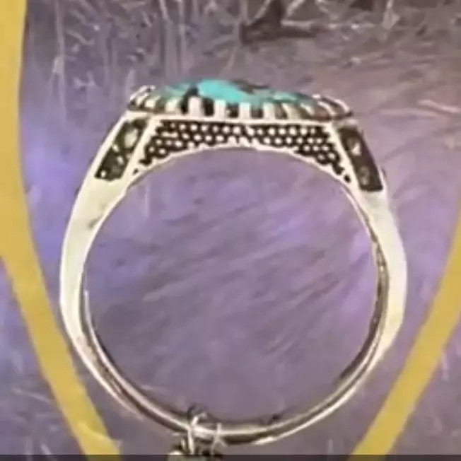 رکاب انگشتر نقره 925 عیار و دارای نگین مارکازیت می باشد و نگین انگشتر فیروزه انیشایور اصل است.