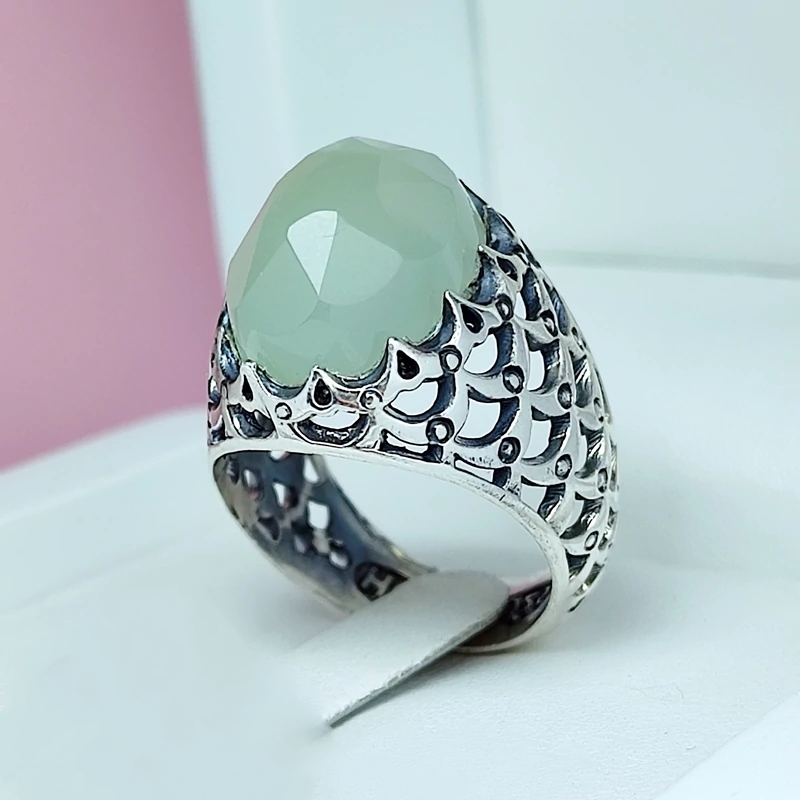 عقیق سبز تراش خاص اصلی کاهویی مردانه