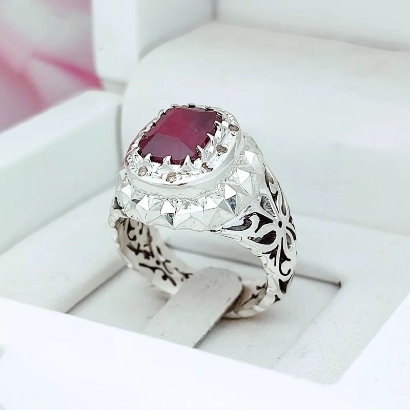 ⚜️ انگشتر اسپرت یاقوت سرخ خوش رنگ 🔸درجه یک و رکاب نقره زیبای مردانه 🔹عیار نقره 925 🔸تاج و بغل برنجی رنگ ثابت 🔹ارسال رایگان