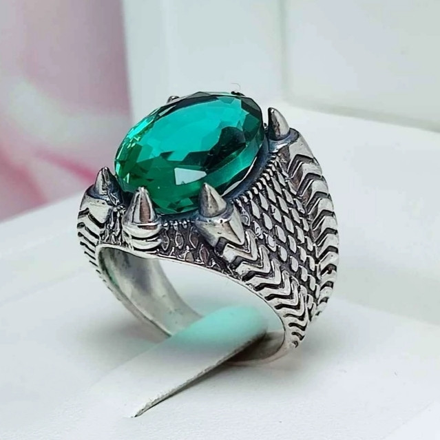 انگشتر نقره مردانه توپاز سنتاتیک سبز (کد 1087)