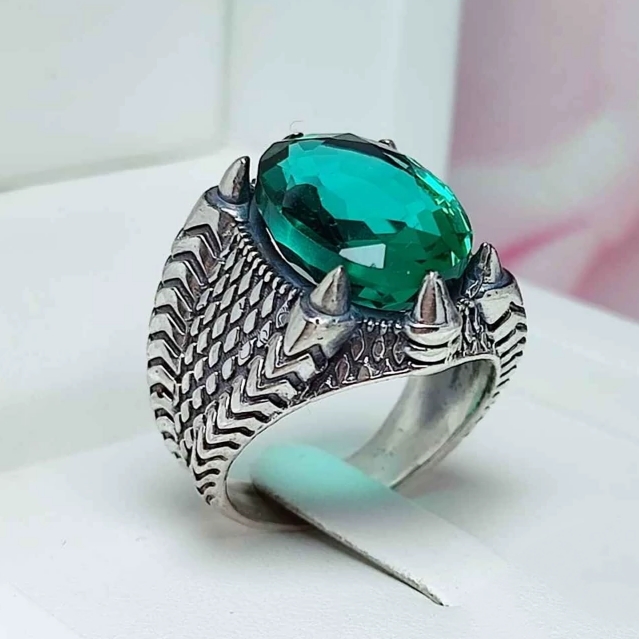 انگشتر نقره مردانه توپاز سنتاتیک سبز (کد 1087)