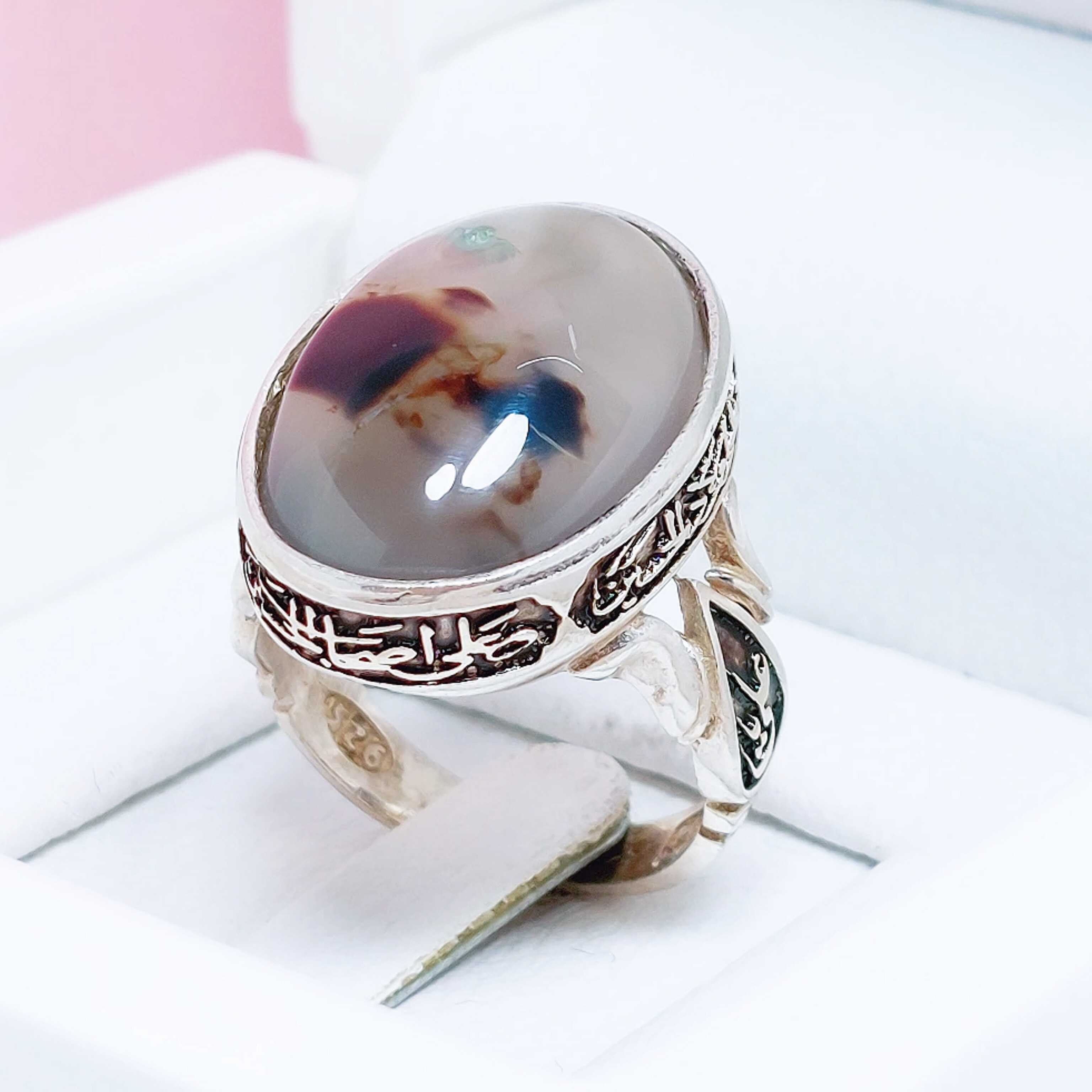 انگشتر شجر طبیعی یا علی یا فاطمه رکاب نقره