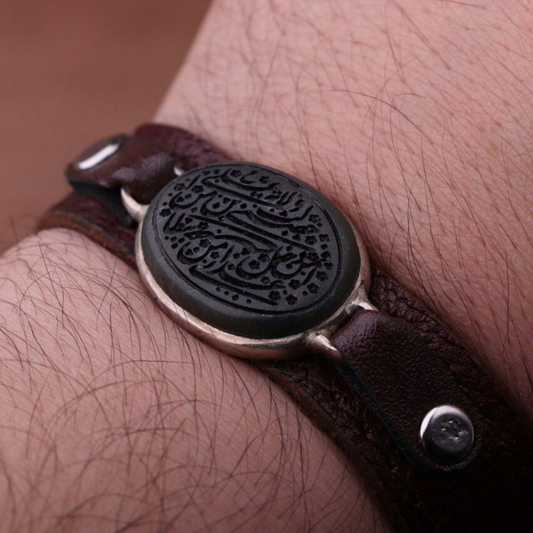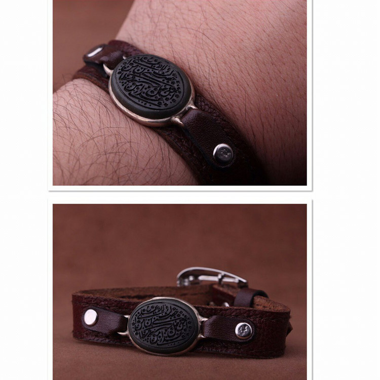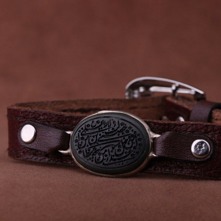 دستبند چرمی یشم اصل مزین با نام امام علی علیه السلام