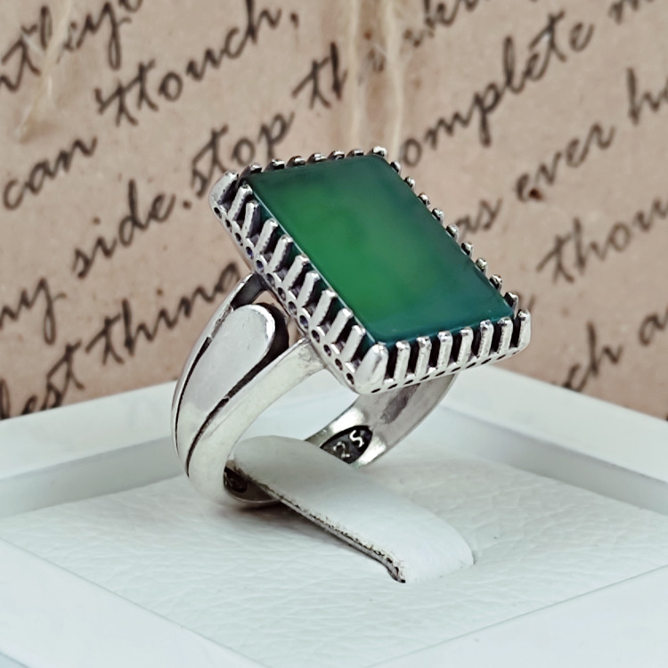 💫 انگشتر مردانه عقیق سبز ✴️ رکاب نقره کار ماشینی 🔹عیار 925 🔹وزن 12 گرم 🔹سایز دلخواه سایز:اگر تمایل دارید انگشتر با سایز دلخواه شما ارسال شود ، فقط کافیست سایز انگشت خود را در هنگام ثبت سفارش (در صفحه سبد خرید » قسمت توضیحات مشتری) ثبت کنید. اگر سایز انگشت خود را نمیدانید ، میتوانید به صفحه ی نحوه سایزگیری در سایت مراجعه و خیلی راحت سایز دقیق انگشتر خود را بدست بیاورید.برای دیدن این صفحه اینجا کلیک کنید.