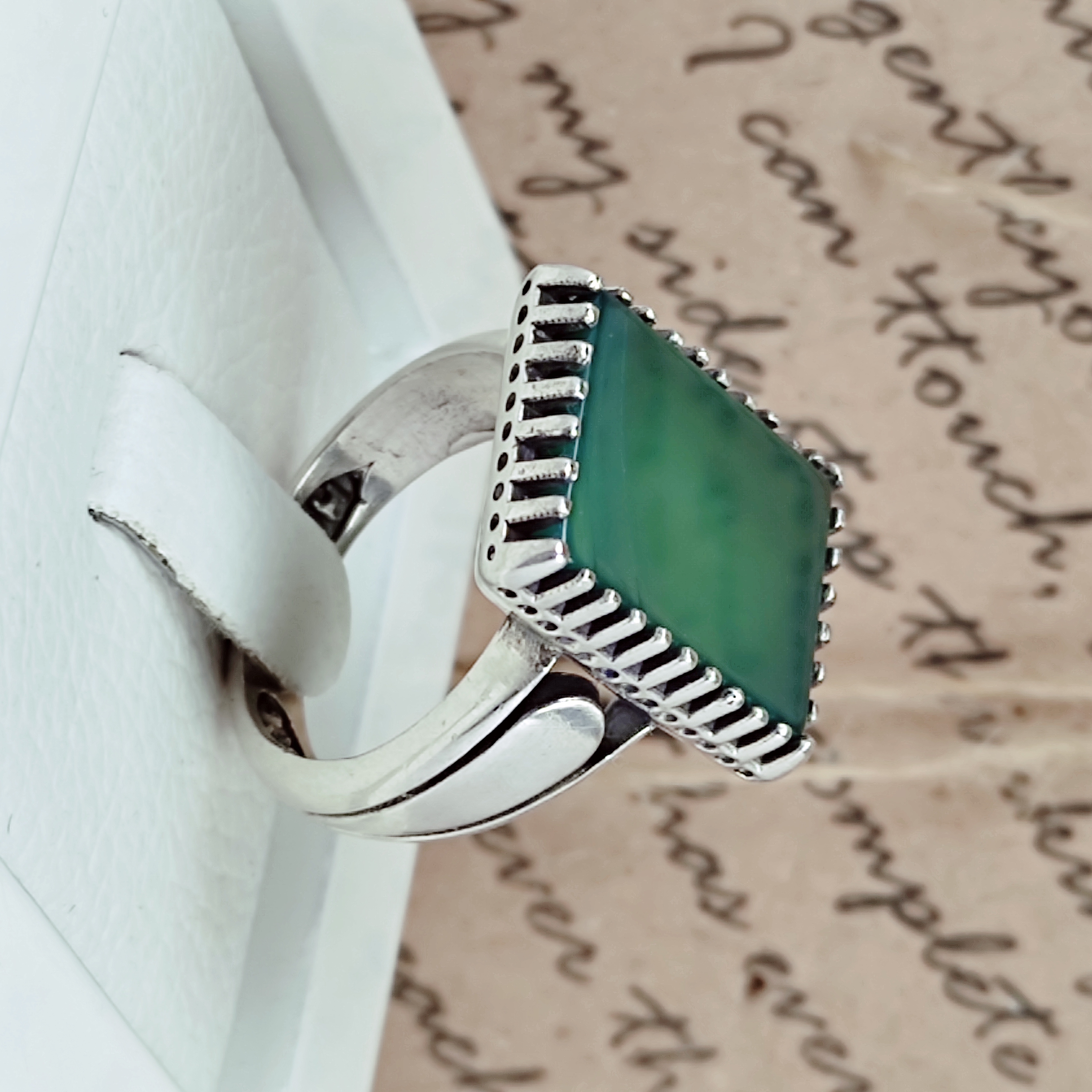 💫 انگشتر مردانه عقیق سبز ✴️ رکاب نقره کار ماشینی 🔹عیار 925 🔹وزن 12 گرم 🔹سایز دلخواه سایز:اگر تمایل دارید انگشتر با سایز دلخواه شما ارسال شود ، فقط کافیست سایز انگشت خود را در هنگام ثبت سفارش (در صفحه سبد خرید » قسمت توضیحات مشتری) ثبت کنید. اگر سایز انگشت خود را نمیدانید ، میتوانید به صفحه ی نحوه سایزگیری در سایت مراجعه و خیلی راحت سایز دقیق انگشتر خود را بدست بیاورید.برای دیدن این صفحه اینجا کلیک کنید.