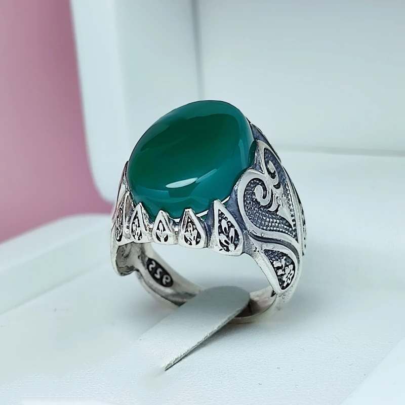 🔰 رکاب نقره عیار ۹۲۵ 🔰 سنگ عقیق سبز 🔶 وزن ۱۵ گرم 💠 ابعاد نگین ۲۰ میل ✨ تاج برنجی رنگ ثابت سایز:اگر تمایل دارید انگشتر با سایز دلخواه شما ارسال شود ، فقط کافیست سایز انگشت خود را در هنگام ثبت سفارش (در صفحه سبد خرید » قسمت توضیحات مشتری) ثبت کنید. اگر سایز انگشت خود را نمیدانید ، میتوانید به صفحه ی نحوه سایزگیری در سایت مراجعه و خیلی راحت سایز دقیق انگشتر خود را بدست بیاورید.برای دیدن این صفحه اینجا کلیک کنید.