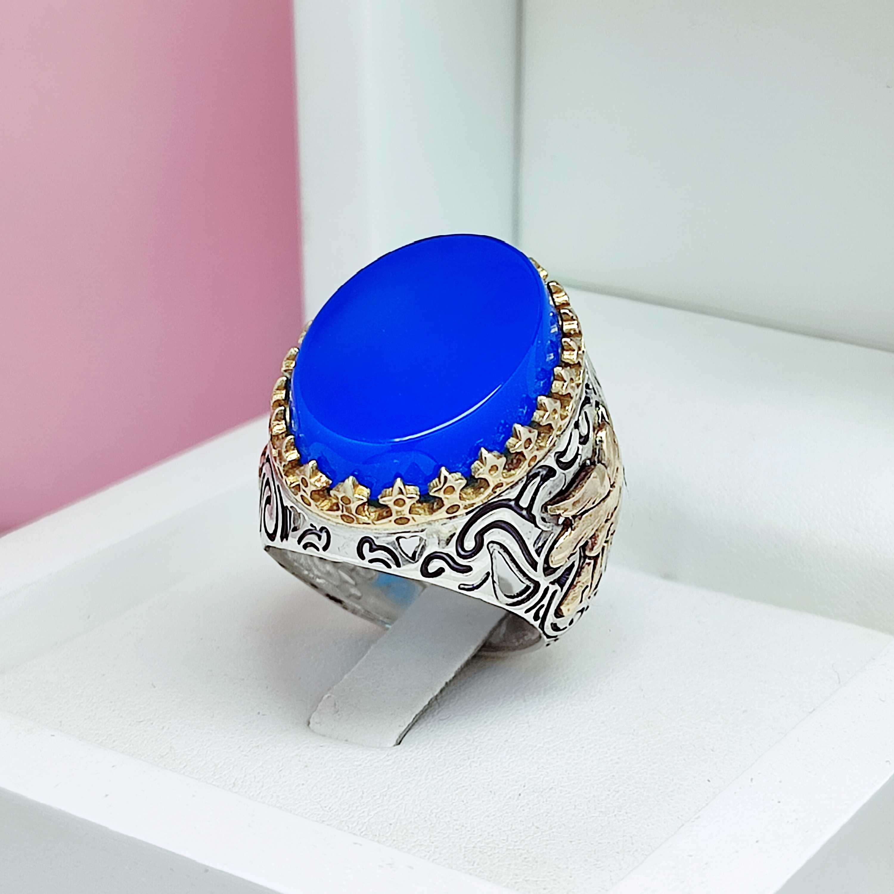 انگشتر نقره مردانه عقیق آبی شیک و خاص طرح پرنده