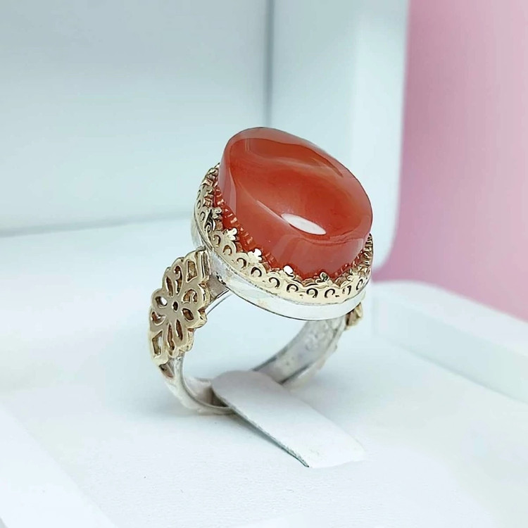 🔴 عقیق یمنی پرتقالی ⚫ ساخت مجدد با سنگ مشابه با تفاوت رنگ جزئی 🔴 وزن ۱۳ گرم 🔴 رکاب نقره با عیار بالا (۹۲۵) 🔴 یمنی اصلی و معدنی 🔴 سایز انگشتر ها مطابق با اندازه دست شما قابل تغییر میباشد 🔴 سایز: اگر تمایل دارید انگشتر با سایز دلخواه شما ارسال شود ، فقط کافیست سایز انگشت خود را در هنگام ثبت سفارش (در صفحه سبد خرید » قسمت توضیحات مشتری) ثبت کنید. اگر سایز انگشت خود را نمیدانید ، میتوانید به صفحه ی نحوه سایزگیری در سایت مراجعه و خیلی راحت سایز دقیق انگشتر خود را بدست بیاورید.برای دیدن این صفحه اینجا کلیک کنید.