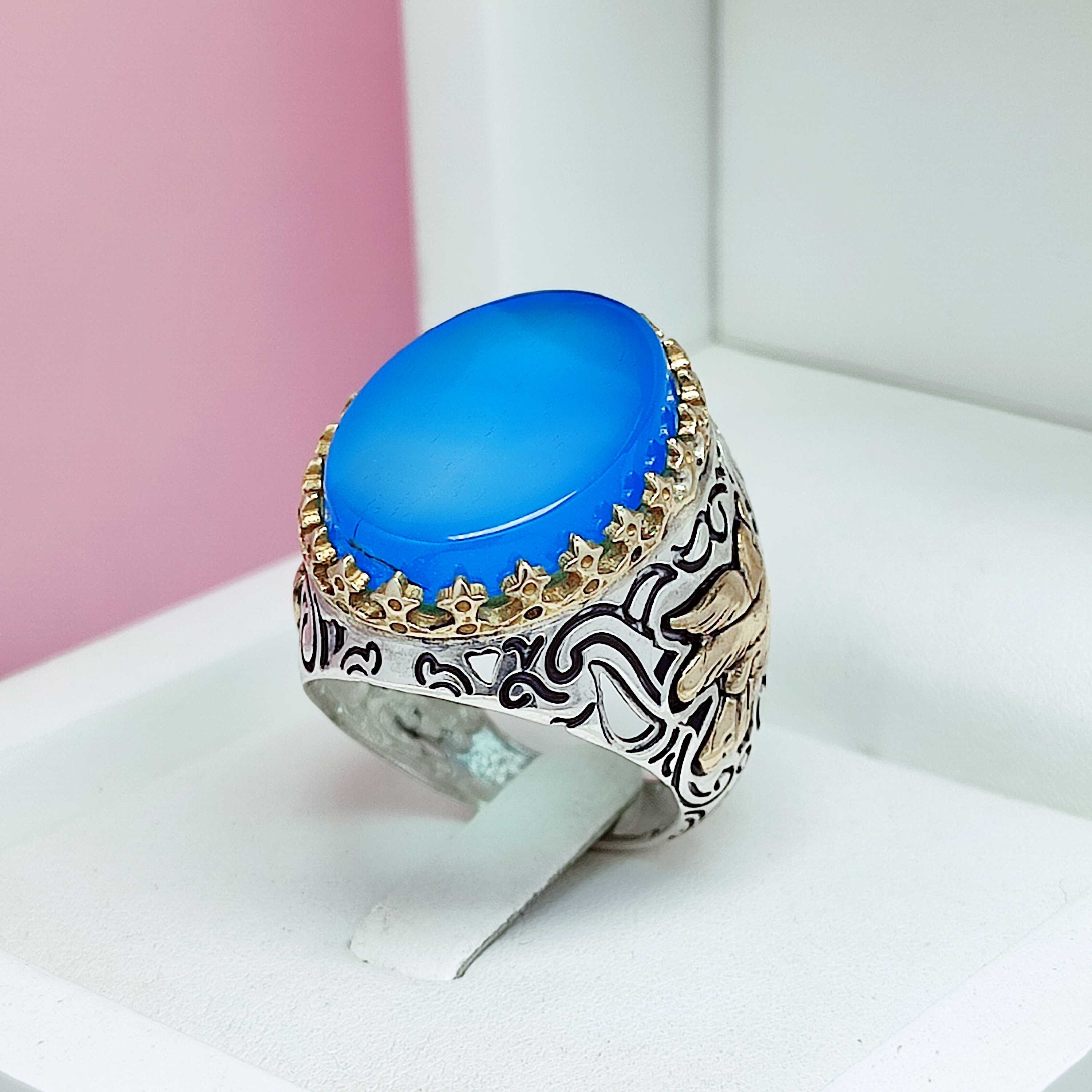 🔵 انگشتر نقره مردانه عقیق آبی 🔵 رکاب نقره 925 ماشینی 🔵 تاج و بغل برنجی رنگ ثابت 🔵 سنگ عقیق معدنی 🔵 وزن ۱۶ گرم 🔵 ارسال رایگان با پست پیشتاز به تمامی نقاط 🔵 ضمانت مادام العمر اصالت محصول سایز: اگر تمایل دارید انگشتر با سایز دلخواه شما ارسال شود ، فقط کافیست سایز انگشت خود را در هنگام ثبت سفارش (در صفحه سبد خرید » قسمت توضیحات مشتری) ثبت کنید. اگر سایز انگشت خود را نمیدانید ، میتوانید به صفحه ی نحوه سایزگیری در سایت مراجعه و خیلی راحت سایز دقیق انگشتر خود را بدست بیاورید.برای دیدن این صفحه اینجا کلیک کنید.