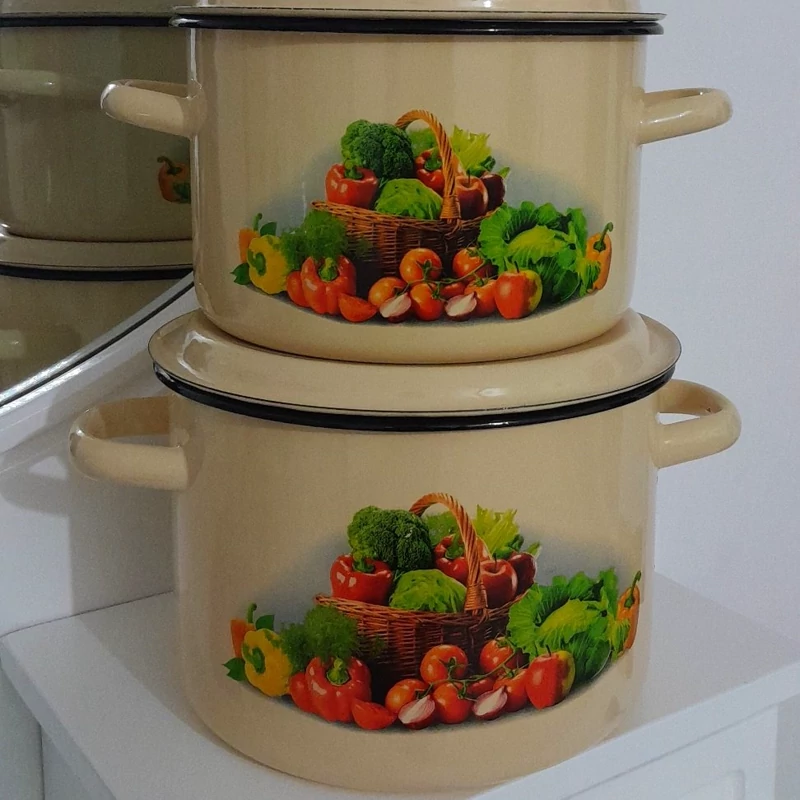 سرویس قابلمه لعابی 6 پارچه روسی طرح سبزیجات