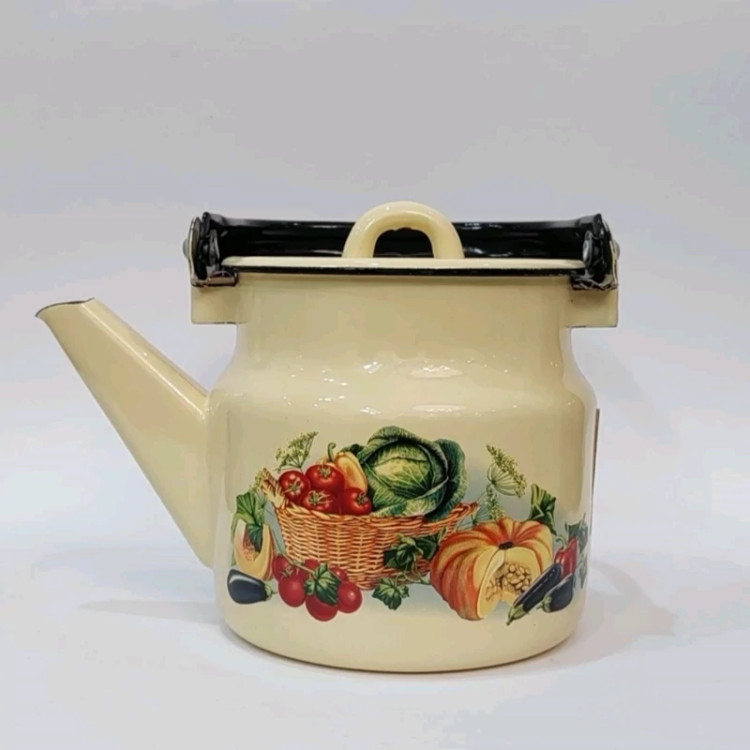 کتری جدید لعابی دسته دار یک ویک لیتری طرح کدو محصول کشور روسیه درجه یک و کیفیت بالا ضمانت 24 ساعت شعله مستقیم