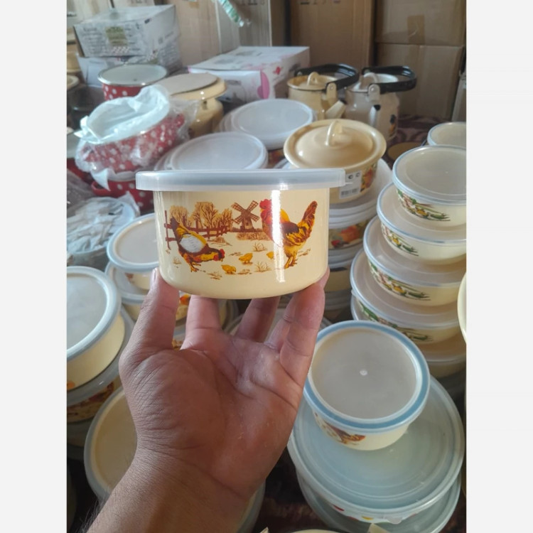 ظرف دربسته فریزری یخچالی لعابی کیفیت بالا و درجه یک و کاربردی در 3طرح مختلف کدو خروس و سرآشپز