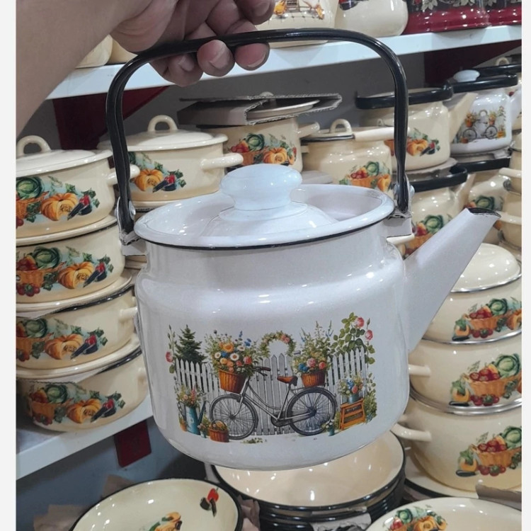کتری زیبای لعابی محصول کشور روسیه درجه یک وضمانتی کاربردی حجم دو لیتر داخل مشکی 24 ساعت ضمانت شعله مستقیم