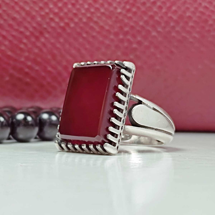 مردانه انگشتر عقیق سرخ چهارگوش پا اردکی