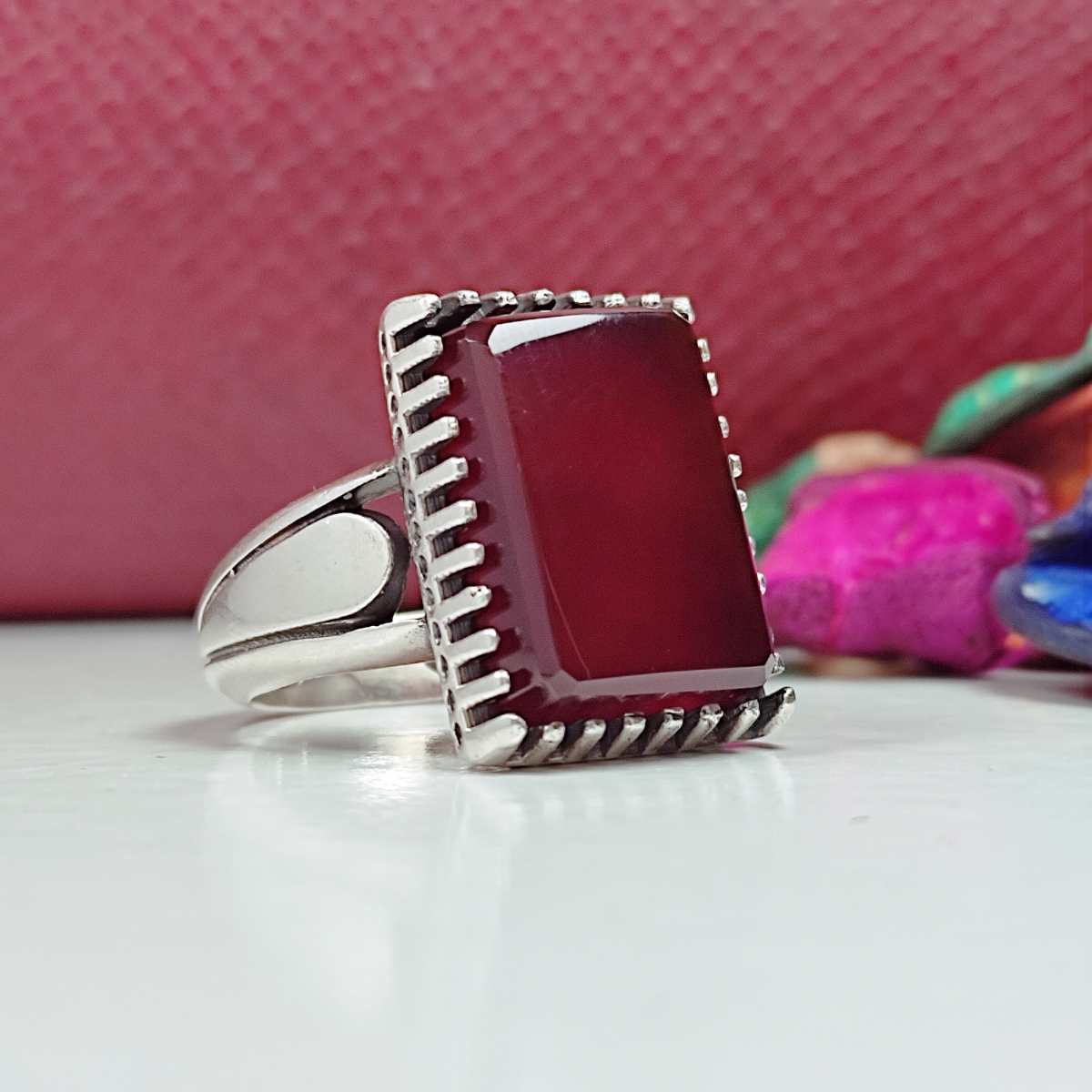 مردانه انگشتر عقیق سرخ چهارگوش پا اردکی